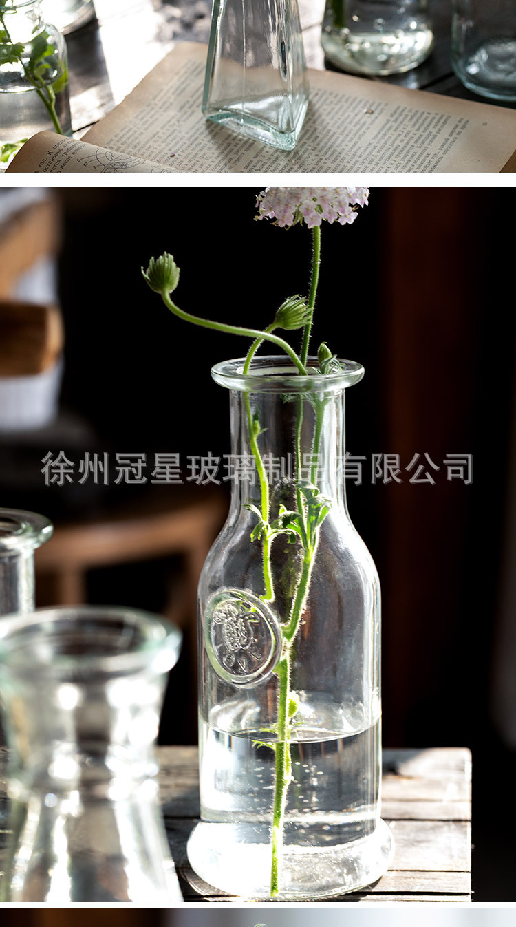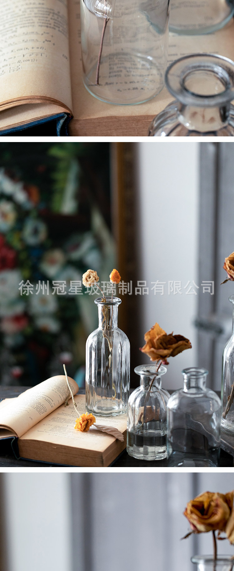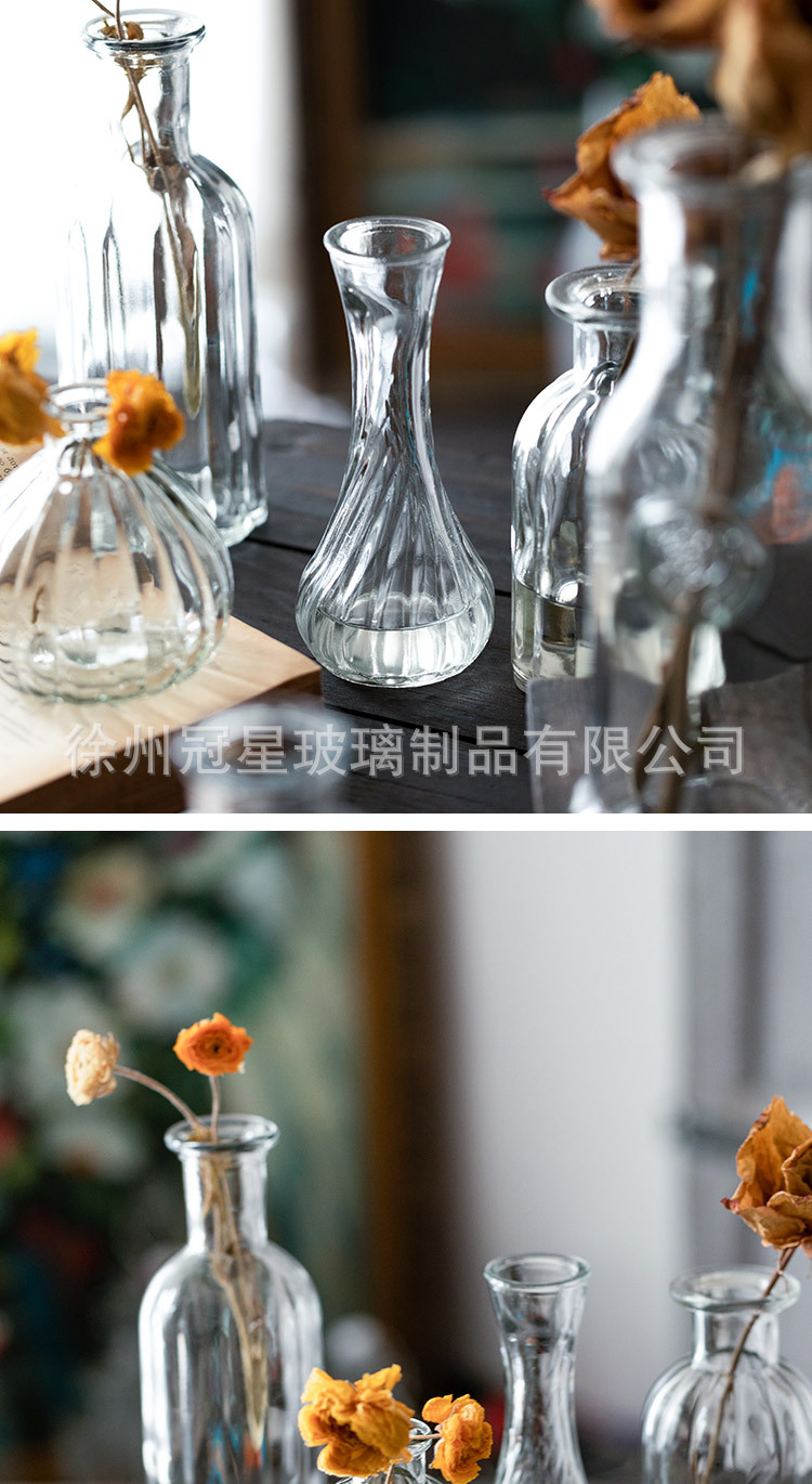 フレンチレトロレリーフミニ小さな花瓶ins风ガラス透明水耕栽培生け花花瓶リビングルーム饰り置物