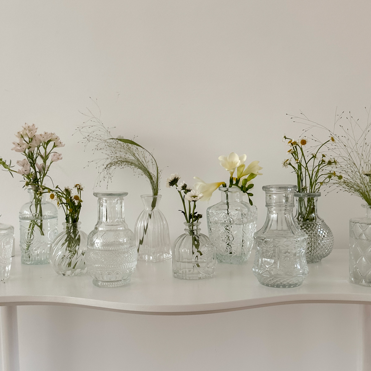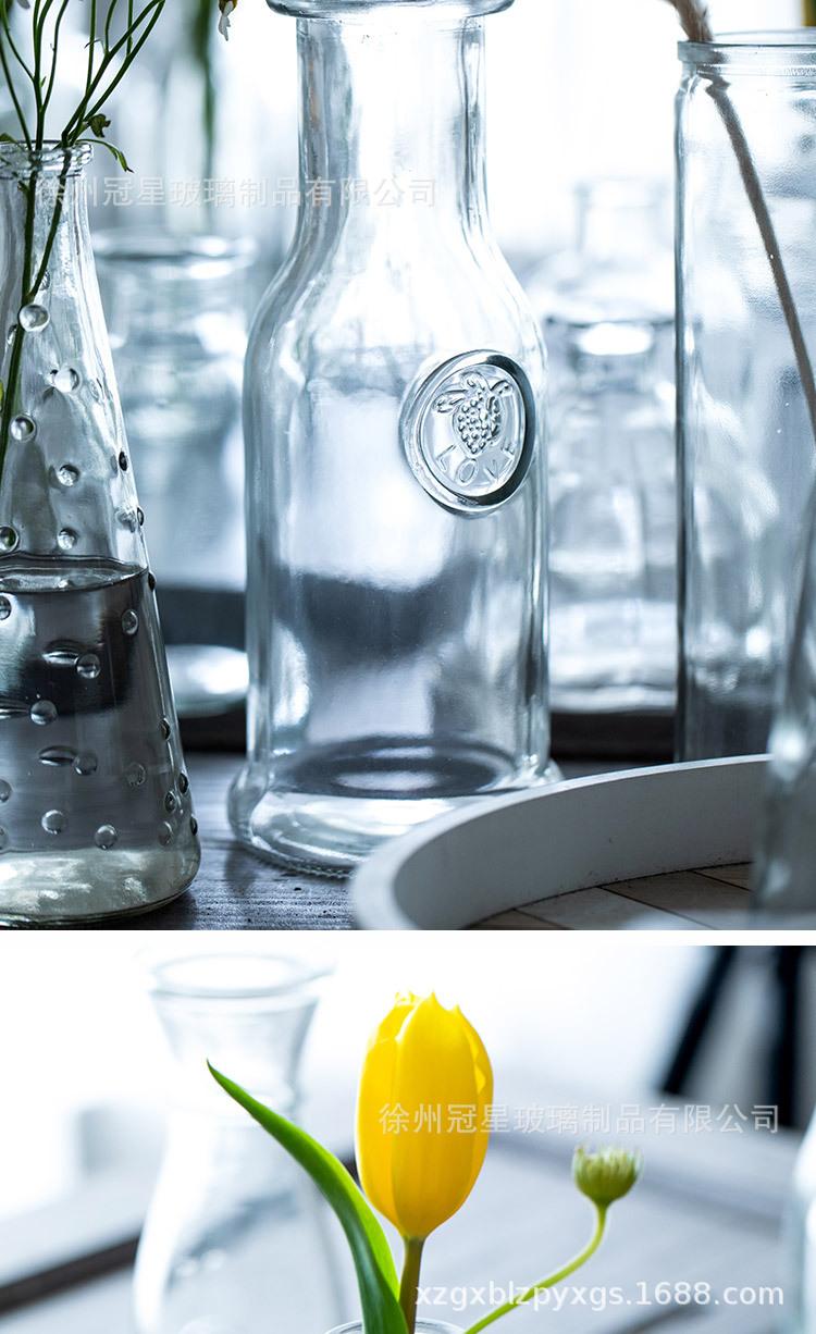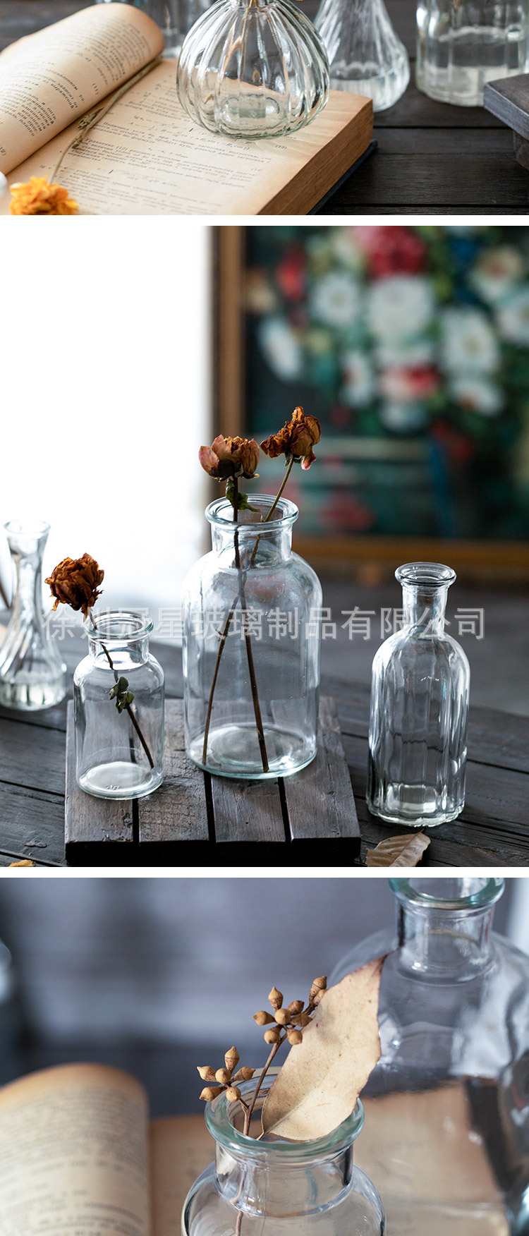 フレンチレトロレリーフミニ小さな花瓶ins风ガラス透明水耕栽培生け花花瓶リビングルーム饰り置物