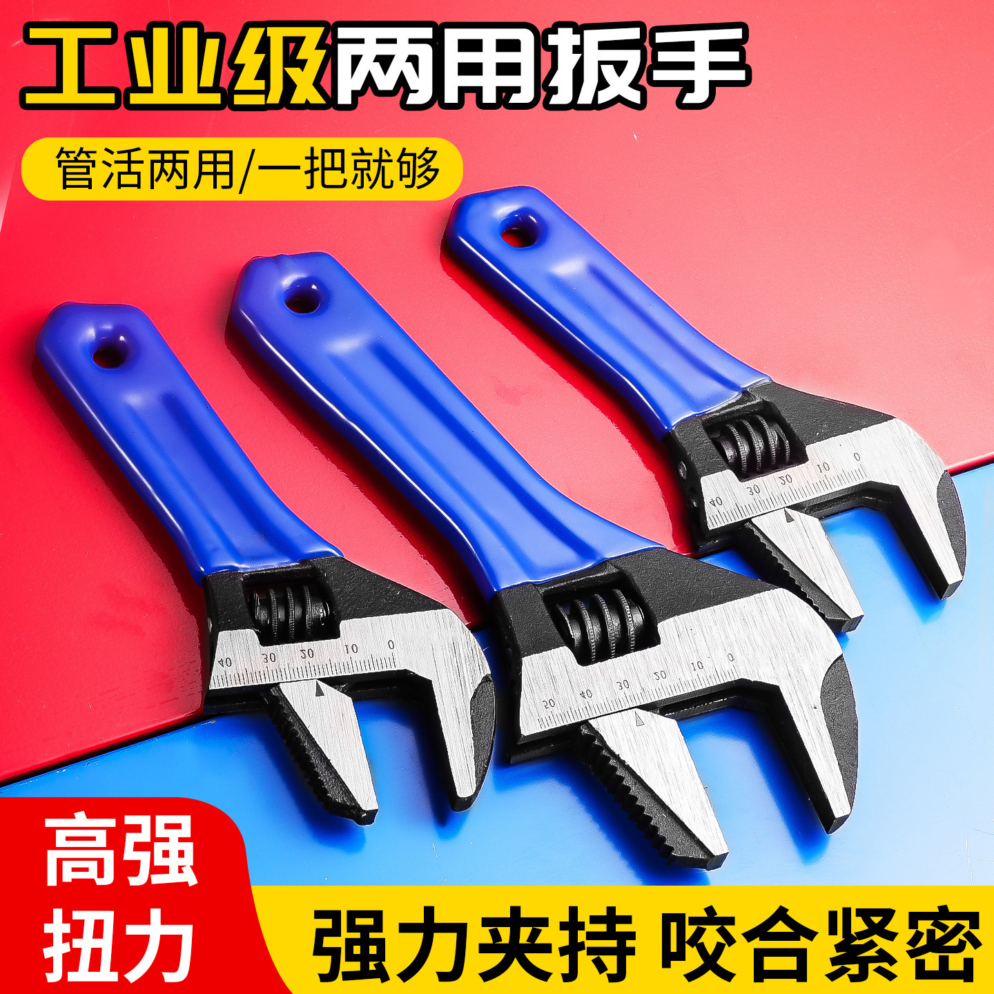 高硬度工业级大开口短柄活动扳手 万能6寸8寸管活两用活动扳手