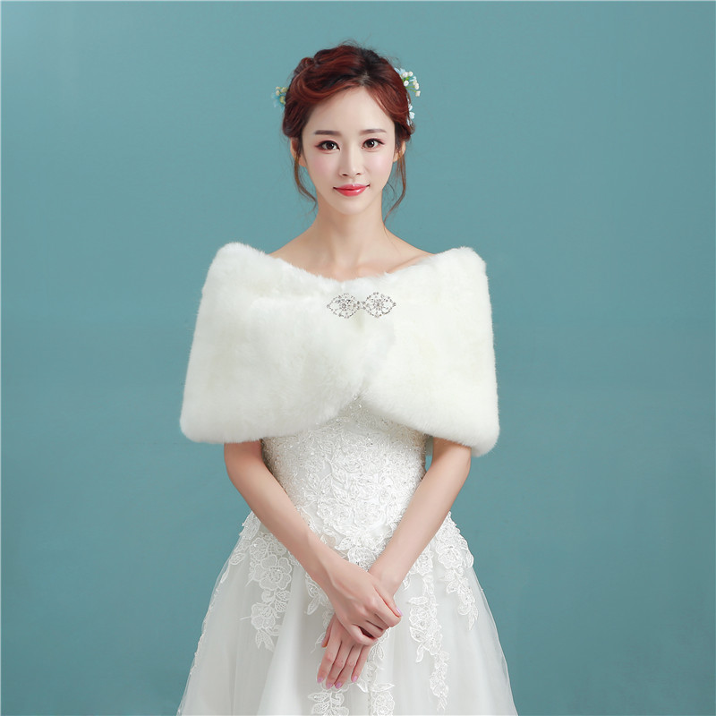 花嫁のウェディングドレスの毛のストール2021韓国版のストールの女性の結婚秋冬の白い赤いファッションの保温のマントの大きいマント