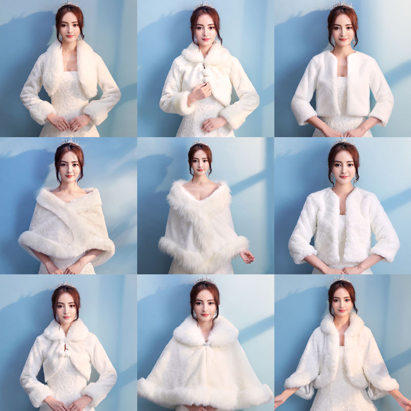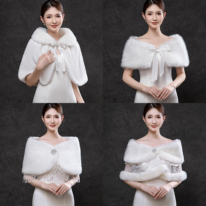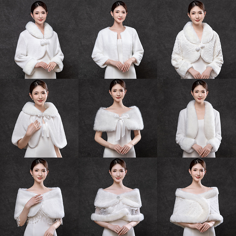 花嫁のウェディングドレスの毛のマント2024韓国版のマントの女性の結婚秋冬の白い赤いファッションの保温のマントの大きいマント