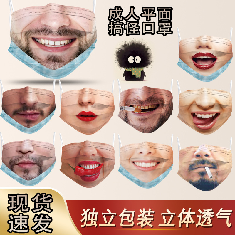大人用マスク、面白い表情、男性用、女性用、誇張されたスタイル、パーソナライズされた三層保護、通気性、肌に優しい、個別包装