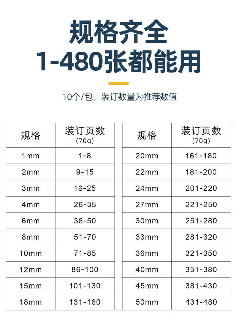 カラー 1mm-10枚、綴じ1~8枚,2mm-10枚、9~15枚綴じ,3mm-10枚、16~25枚綴じ,4mm-10枚、26~35枚綴じ,6mm-10枚、36~50枚綴じ,8mm-10枚、51~70枚綴じ,10mm-10枚、71~85枚綴じ,12mm-10枚、86~100枚綴じ,15MM-10枚、101~130枚綴じ,18mm-10枚、131~160枚綴じ,20mm-10枚、161~180枚綴じ,22mm-10枚、181~200枚綴じ,24mm-10枚、綴じ枚数201~220枚,27mm-10枚、221~250枚綴じ,30mm-10枚、251~280枚綴じ,33mm-10枚、綴じ枚数281~320枚,36mm-10枚、321~350枚綴じ,45mm-10枚、381~430枚綴じ,50mm-10枚、綴じ枚数431~480枚