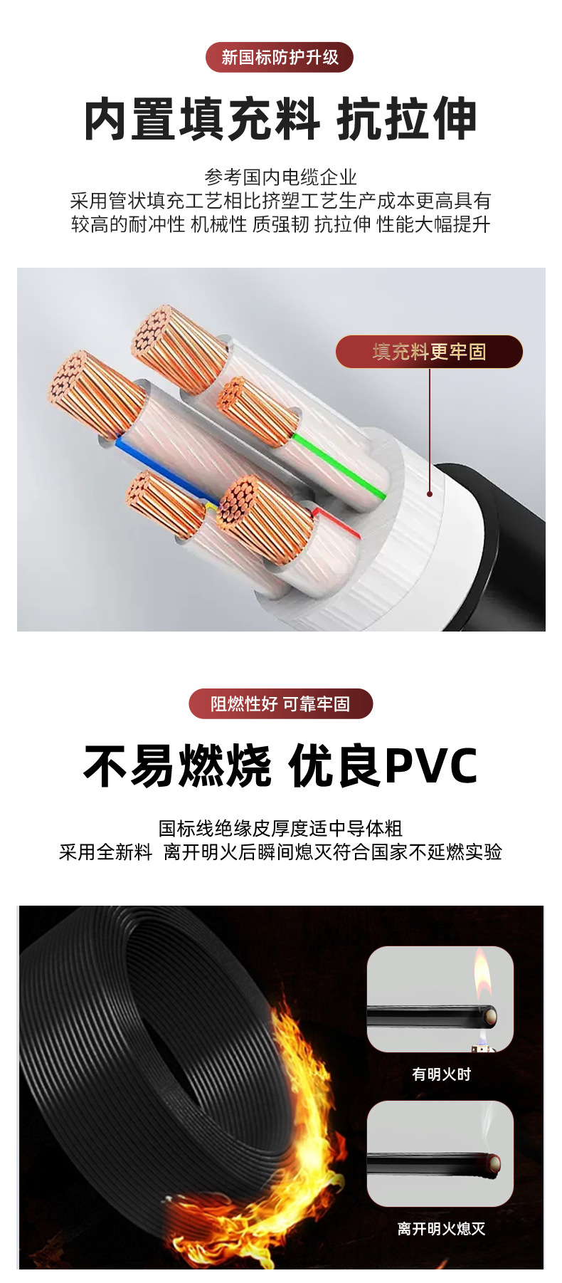 中国標準民用五芯pvc材質保護カバー線家装工業黒保護カバー線電気設備電線ケーブル
