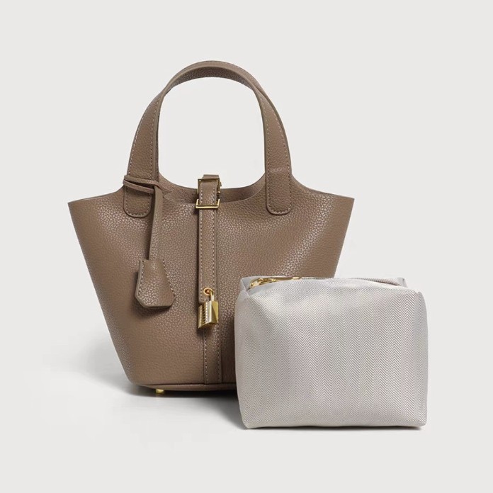 クラシックな菜籠バッグ、PUレザーのレディースハンドバッグ、シンプルなバケットバッグ、二層バッグ、おしゃれで多用途なレディースバッグ、越境EC向け