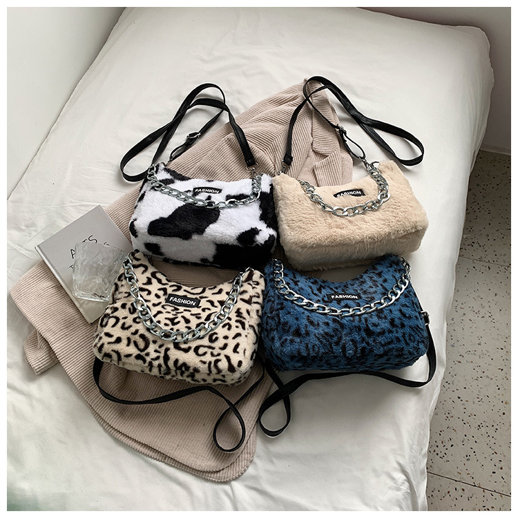2024年キュートな牛柄とヒョウ柄の大容量ぬいぐるみバッグ、トレンディでファッショナブルなチェーン付きレトロショルダーバッグ、クロスボディバッグ、多用途