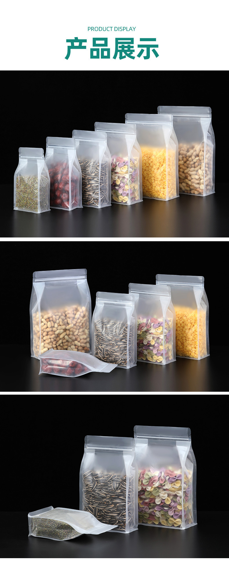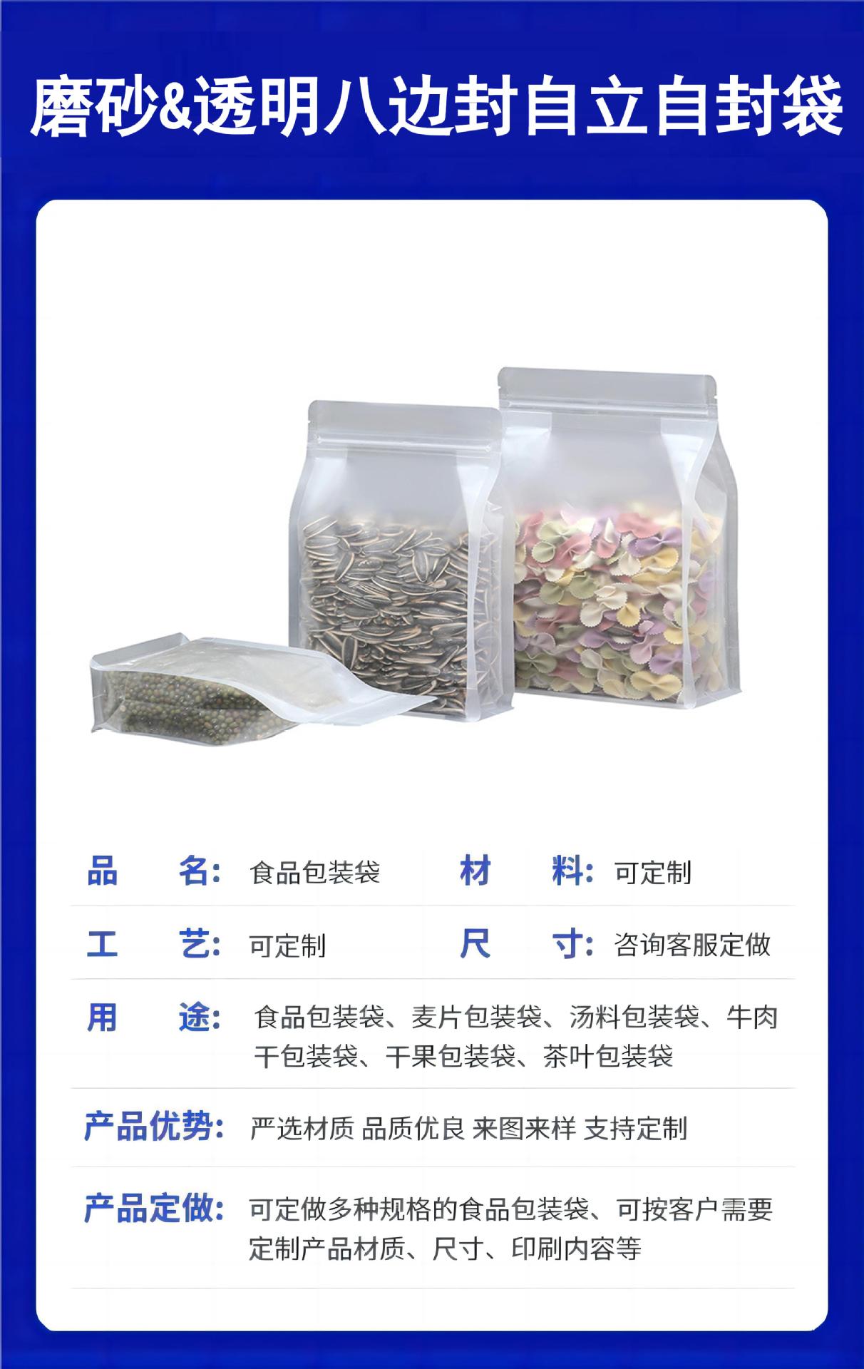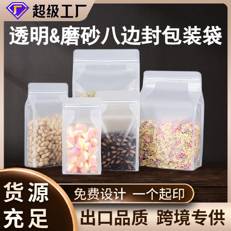 磨砂透明八边封自封袋加厚干果花茶叶包装袋手提零食密封袋食品级