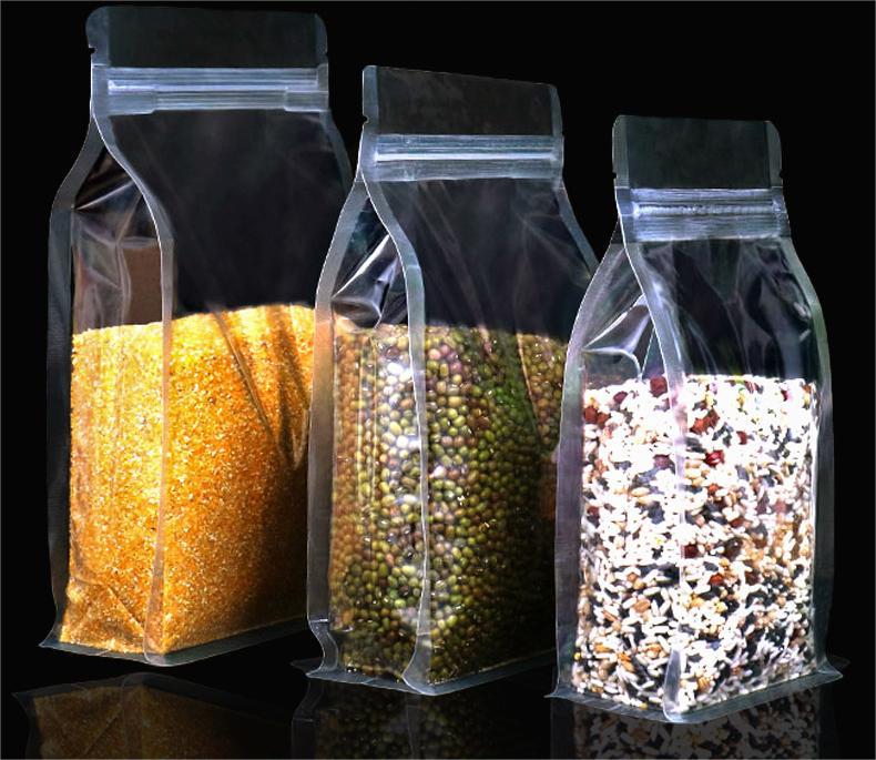 在庫ありの穀物包装袋、米、小麦、豆、スナック、防湿PE複合透明八方シール食品袋