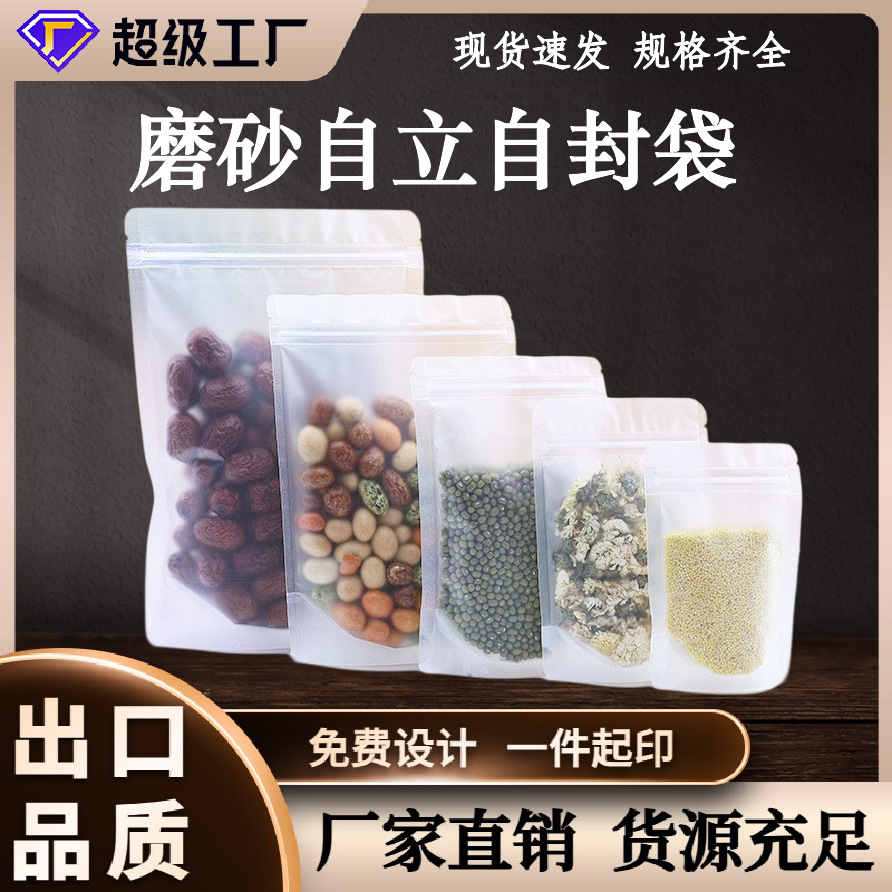 磨砂八边封磨砂八边封包装袋零食品自封袋自立袋干货坚果塑料袋