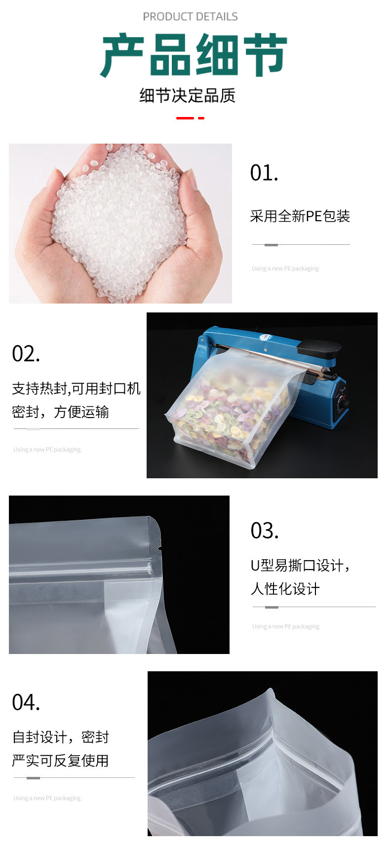 スポット透明つや消し八面シール袋 PE 袋ジップロック袋増粘ドライフルーツおよび穀物包装袋食品袋ティーバッグ