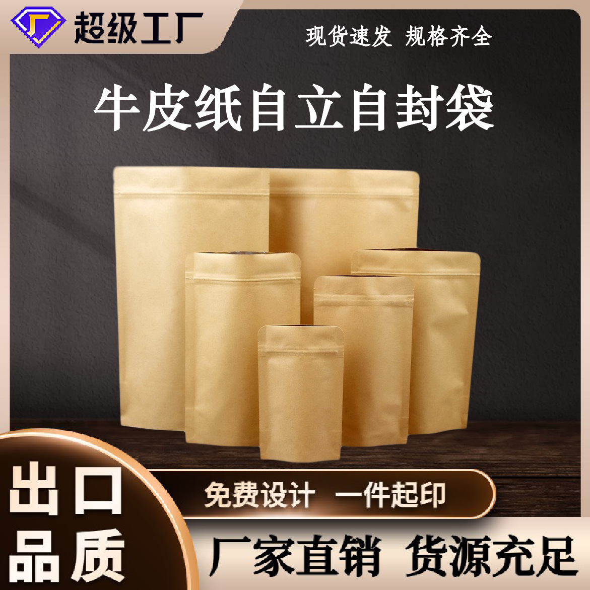 クラフト紙自立ジップロック袋窓なし食品ドライフルーツ茶包装袋クラフト紙ジップロック袋メーカー卸売