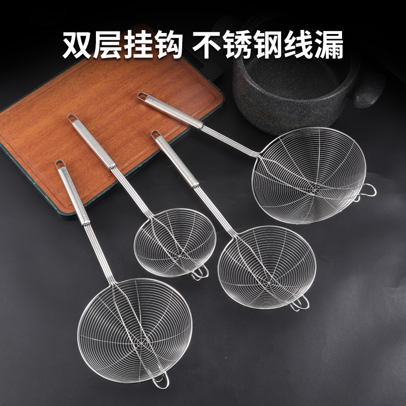 ステンレス製のザル、キッチン、レストラン、揚げ物用、大網、厚めの四線、家庭用、鍋用、濾し、すくい網