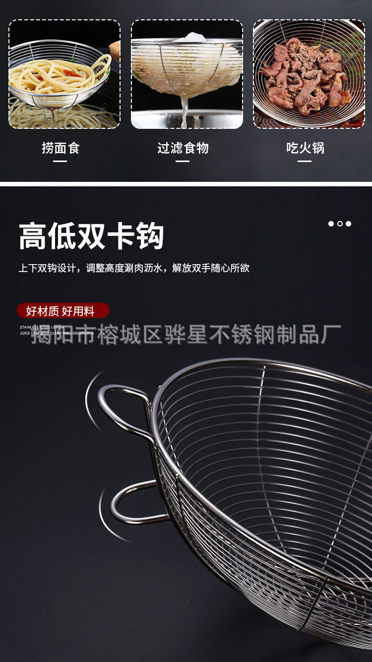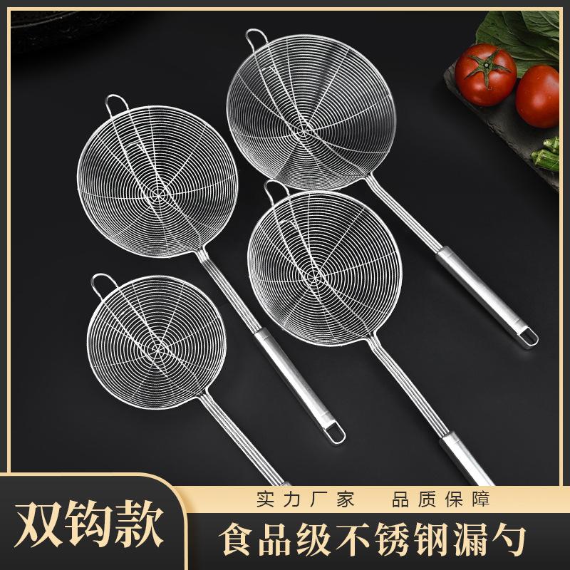 加厚不锈钢双钩线漏带挂钩厨房油炸捞勺家用笊篱漏勺捞面火锅网漏