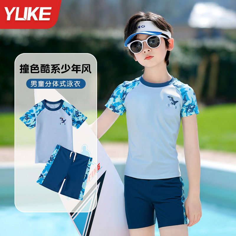 Yuke 子供用水着 2点セット 子供用 2025 男の子水着 スプリットモデル 新しい男の子水着セット 新しい