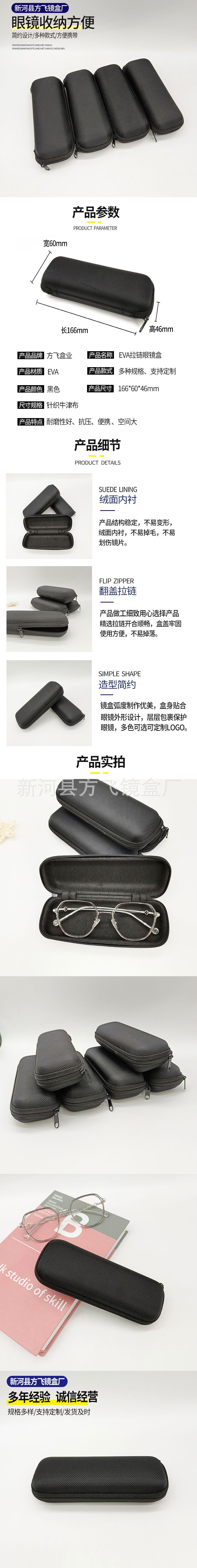 牛津布eva眼镜拉链盒黑色长方形眼镜包太阳镜墨镜盒抗压收纳包
