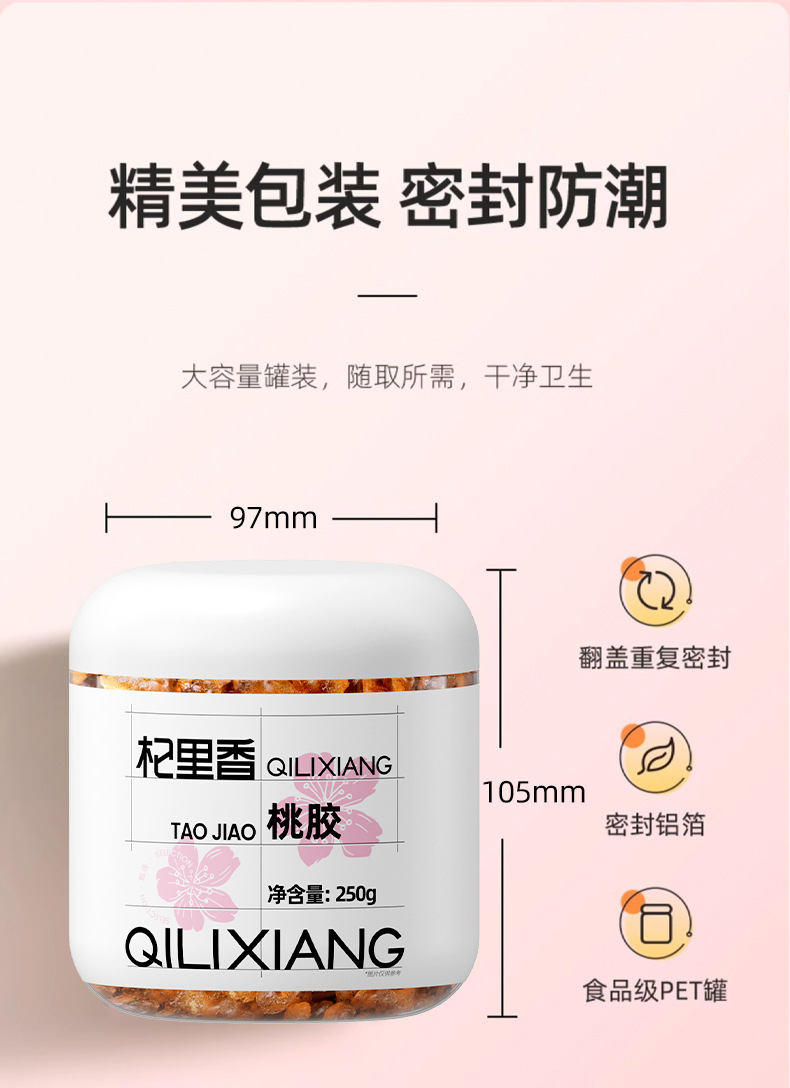 梱包仕様 Qilixiang 角瓶 ピーチガム 125g,Qilixiang スクエアジャー ピーチガム 300g,Qilixiang 角瓶 ピーチガム 250g,Qilixiang 80g ボトル入り霊芝タブレット