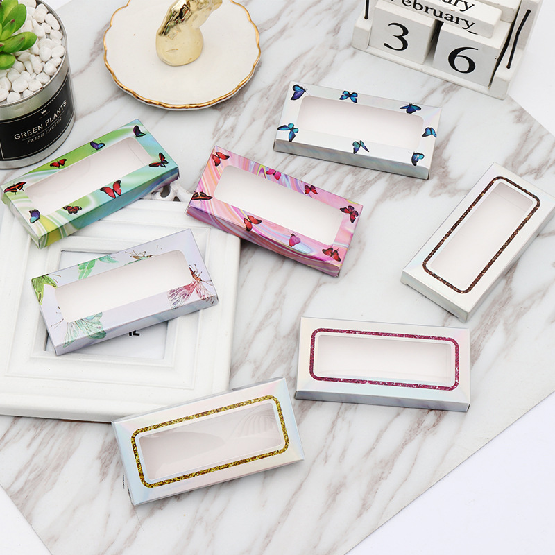 蝶のまつげの包装箱の現物のまつげの箱のカラーの蝶のカードの紙の箱はlogoを印刷することができます。