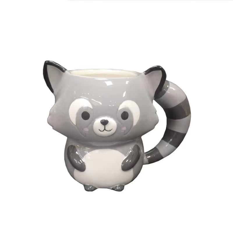色絵立体アライグマ陶磁器コップかわいい動物表情陶磁器コップマグカップ動物コップ