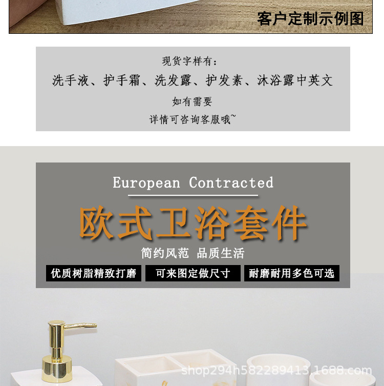 ヨーロッパ式のサンプルルームの風呂用品の置物樹脂風呂の手洗い液の乳液を分けてセットします。