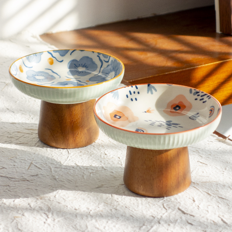 陶磁器の高足皿の中国式の復古のお茶の皿の家庭用の果物の皿の下で昼寝のお菓子のお菓子の皿の木の底