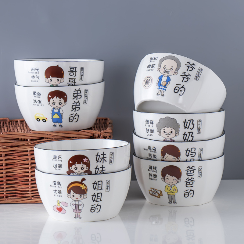 親子の碗の家庭用のご飯の碗の家族の食事の組み合わせの食器のセットのアイデアの漫画の陶磁器の碗の個性の仕事の碗
