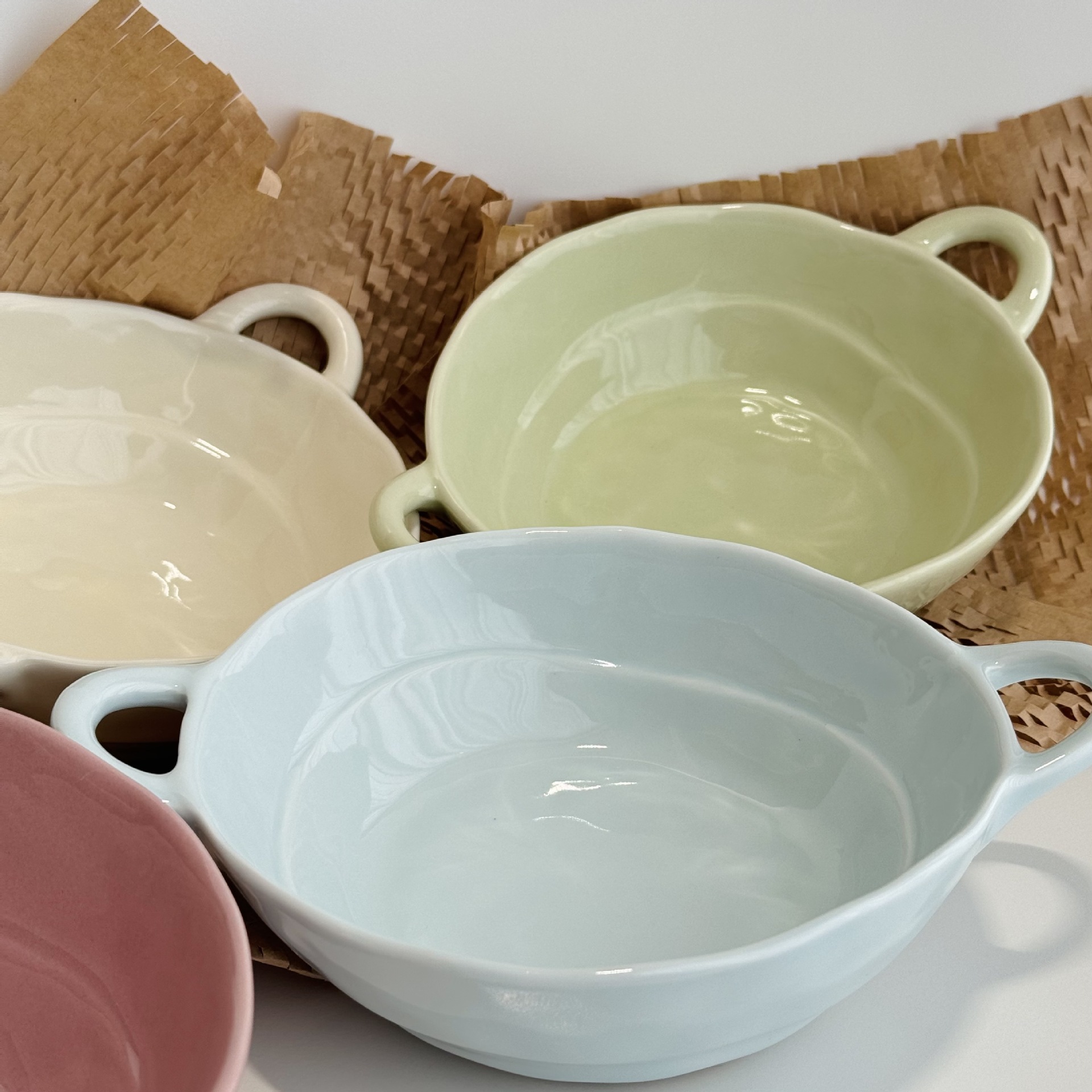 双耳碗のシンプルな食器の手は不規則な小さい大衆の陶磁器のスープの碗の泡の麺の碗のラーメンの碗の家庭用の麺の碗の大きい碗をつまみます