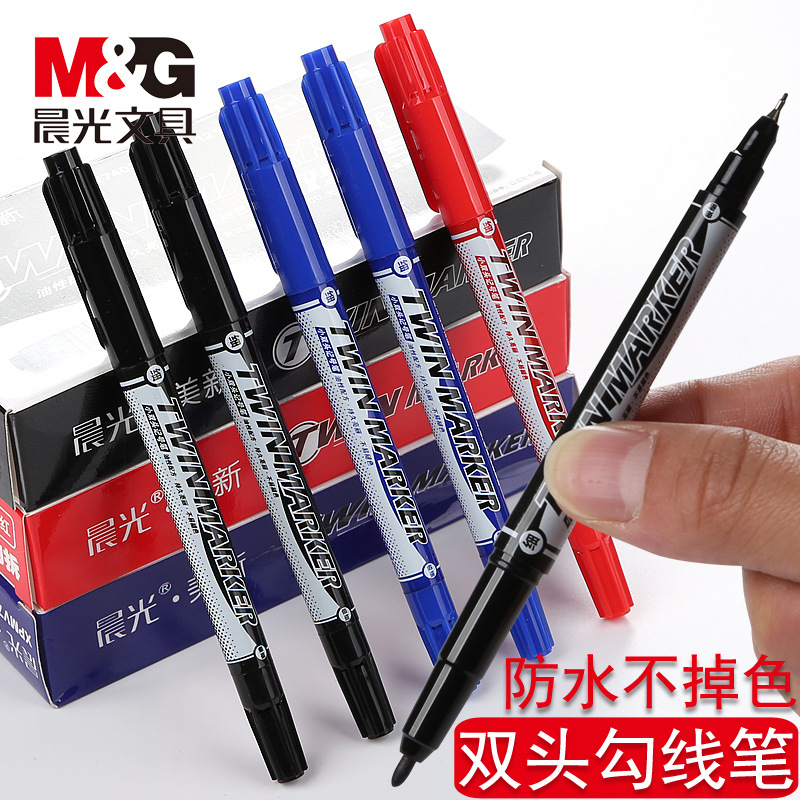 速乾性マーカーペン双頭小型油性フックペン両端アート絵画防水細いヘッド学生文具卸売
