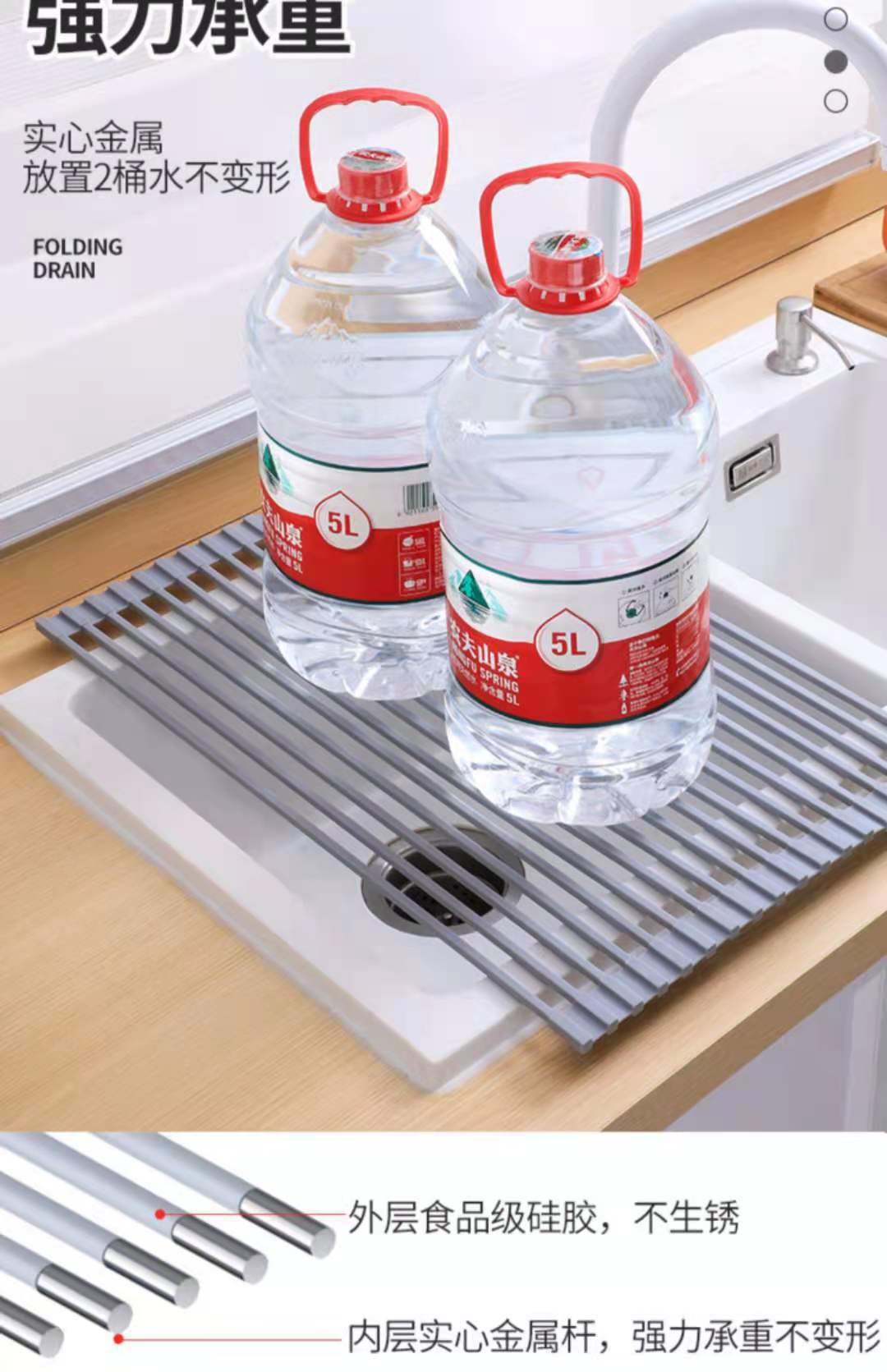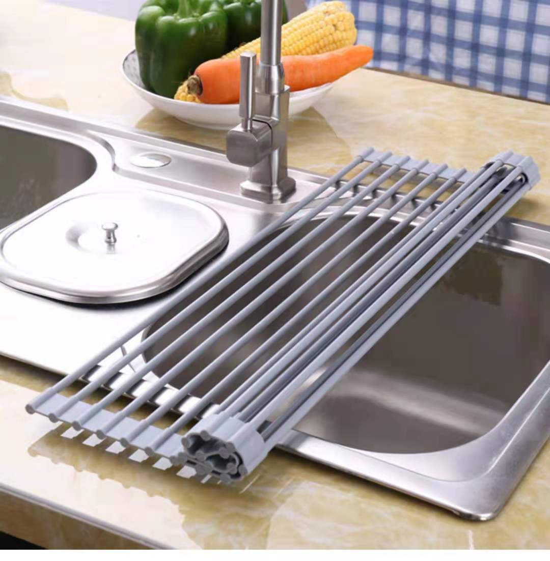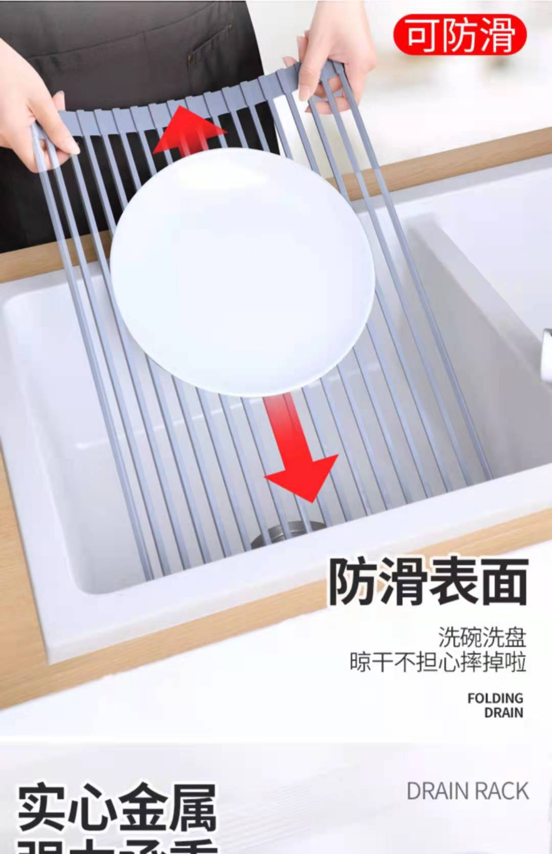 角型扁管丸棒水切りかごシリコン水切りラックキッチン食器乾燥ラック洗い桶巻き上げ式水切りラック