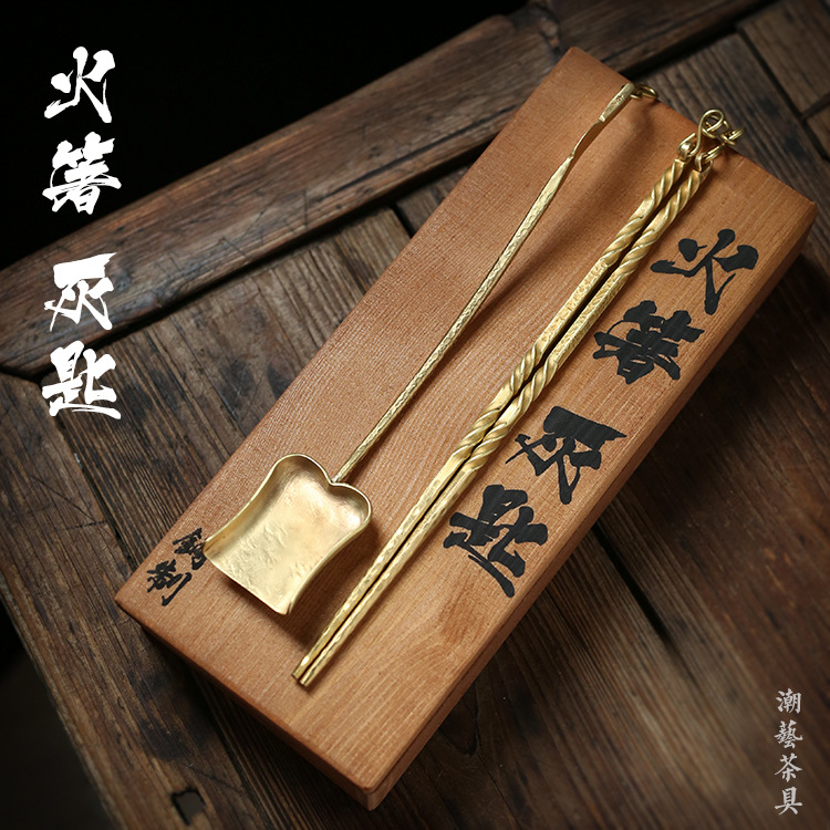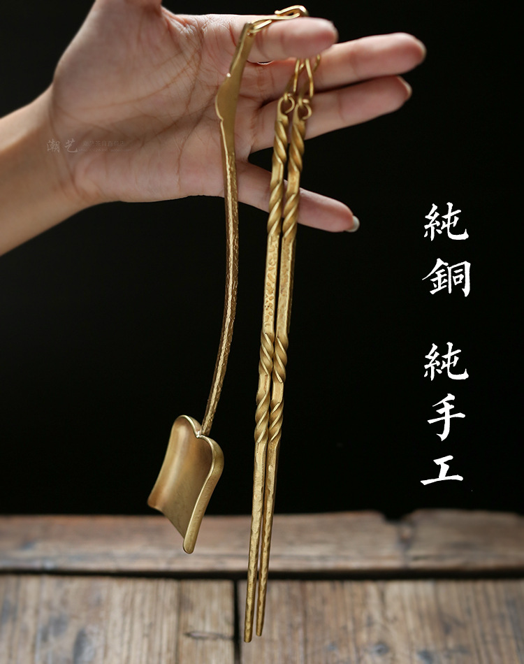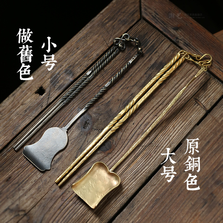 囲炉煮茶炭炉道具銅件工芸品潮州カンフー茶炉挟み炭素銅箸ペンチシャベルスプーン