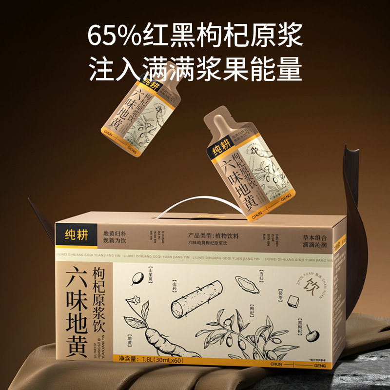 纯耕1.8L(60袋)量贩装六味地黄枸杞原浆饮熟地黄茯苓当归枸杞饮