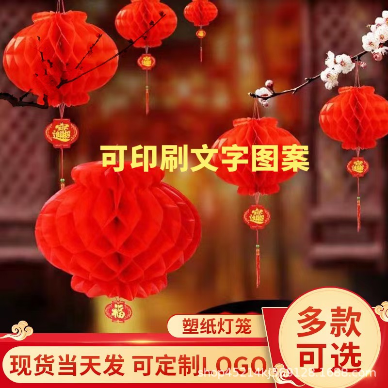 屋外新年紙提灯 結婚式 春節 小提灯 開店装飾 吊り下げ飾り用品 大きな赤い蜂の巣提灯