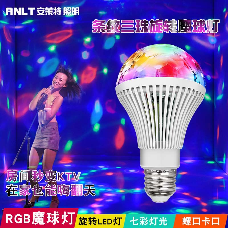 小魔球回転灯雰囲気祝日3wled七彩回転ktv家庭小魔球縞七彩魔球