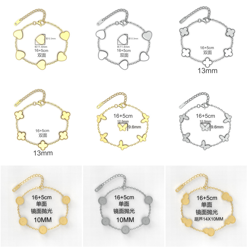 手工钛钢螺钿底胚diy四叶草手链蝴蝶葫芦桃心点翠素胚不掉色