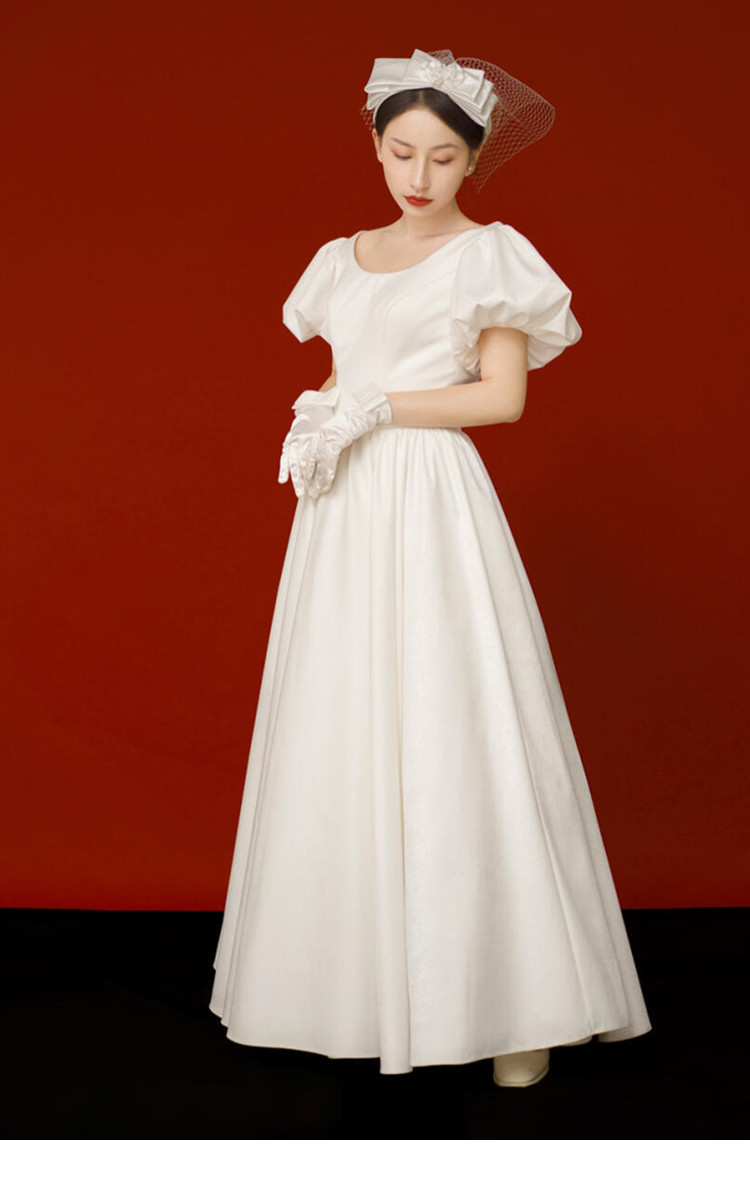 サテンの軽いウェディングドレスの保守2023新作の白いシンプルな森系の新婦の登録は証明書のドレスのスカートの女性の小さい尾を引きます。