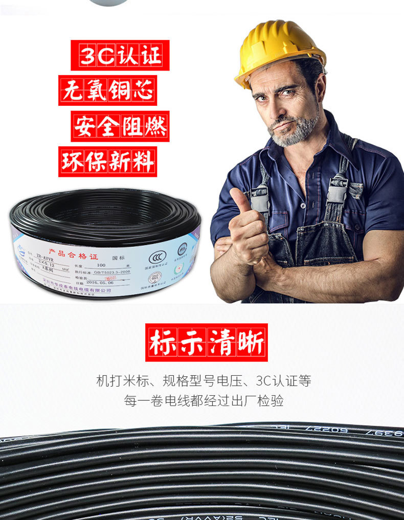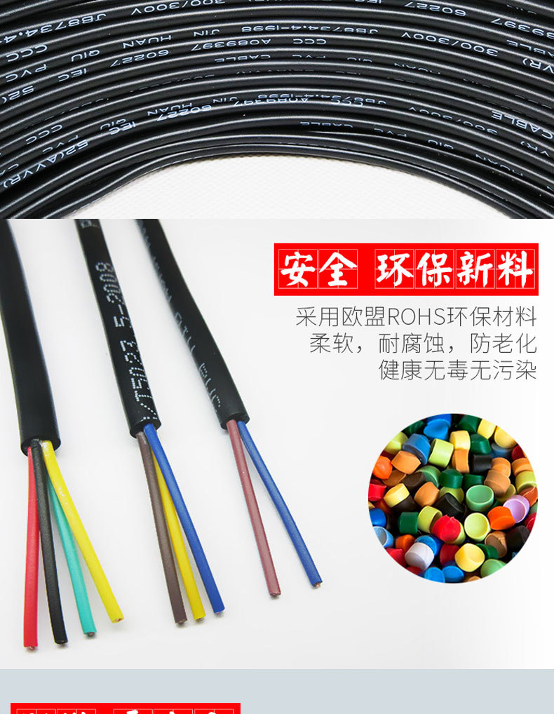 国家標準銅芯電源コード 2 3 4 芯ケーブル RVV0.75 1.0 1.5 2.5 4 6 平方軟質シース線