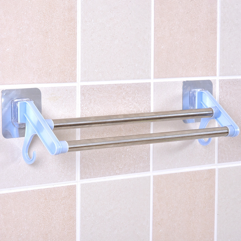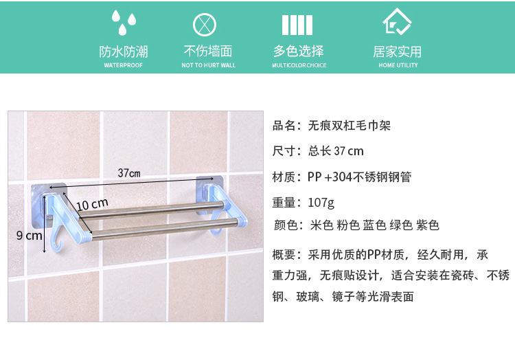 シームレスパンチフリーダブルポールタオルラックバスルームキッチン収納ラックプラスチックステンレス鋼タオルバーハンガー