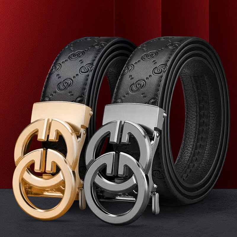 ベルトメンズ高級感高級合金自動バックル牛革エンボスベルトシンプルカジュアル男性式ズボンベルト現物