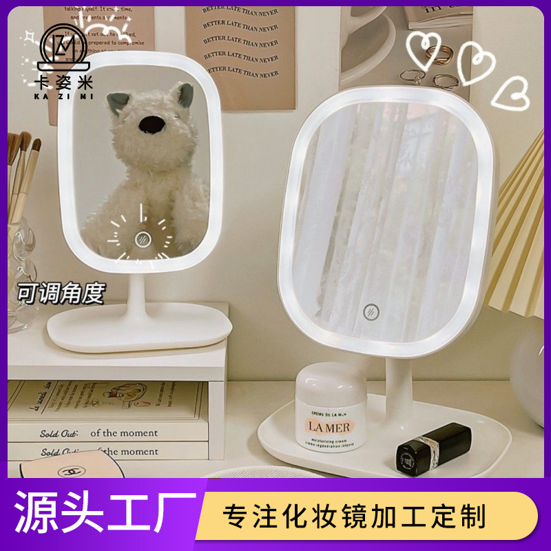 新型角型ライト付き化粧鏡ネット赤かわいい携帯取り外し可能高精細タッチ補光LED化粧鏡