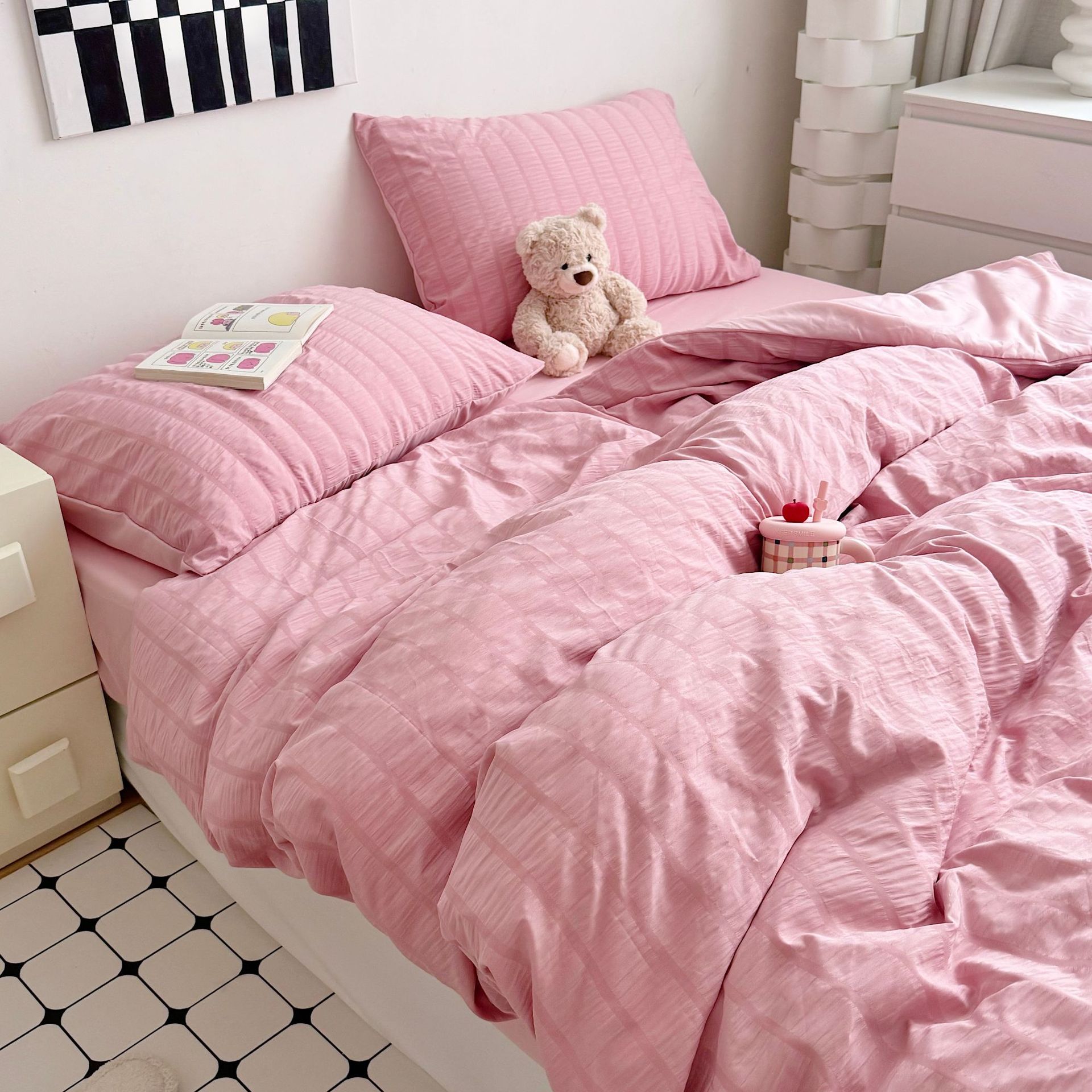 クロスボーダー日本サイズ工場直販韓国風クリアシンプルインスタイルプリーツシアサッカーダブルセットドミトリースタイル