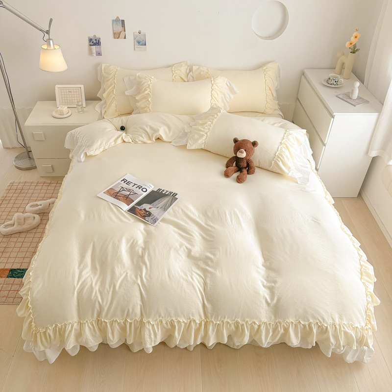 クロスボーダー日本サイズクロスボーダー韓国風プリンセススタイル片面フリルベッドスカートウォッシュコットン4点セット