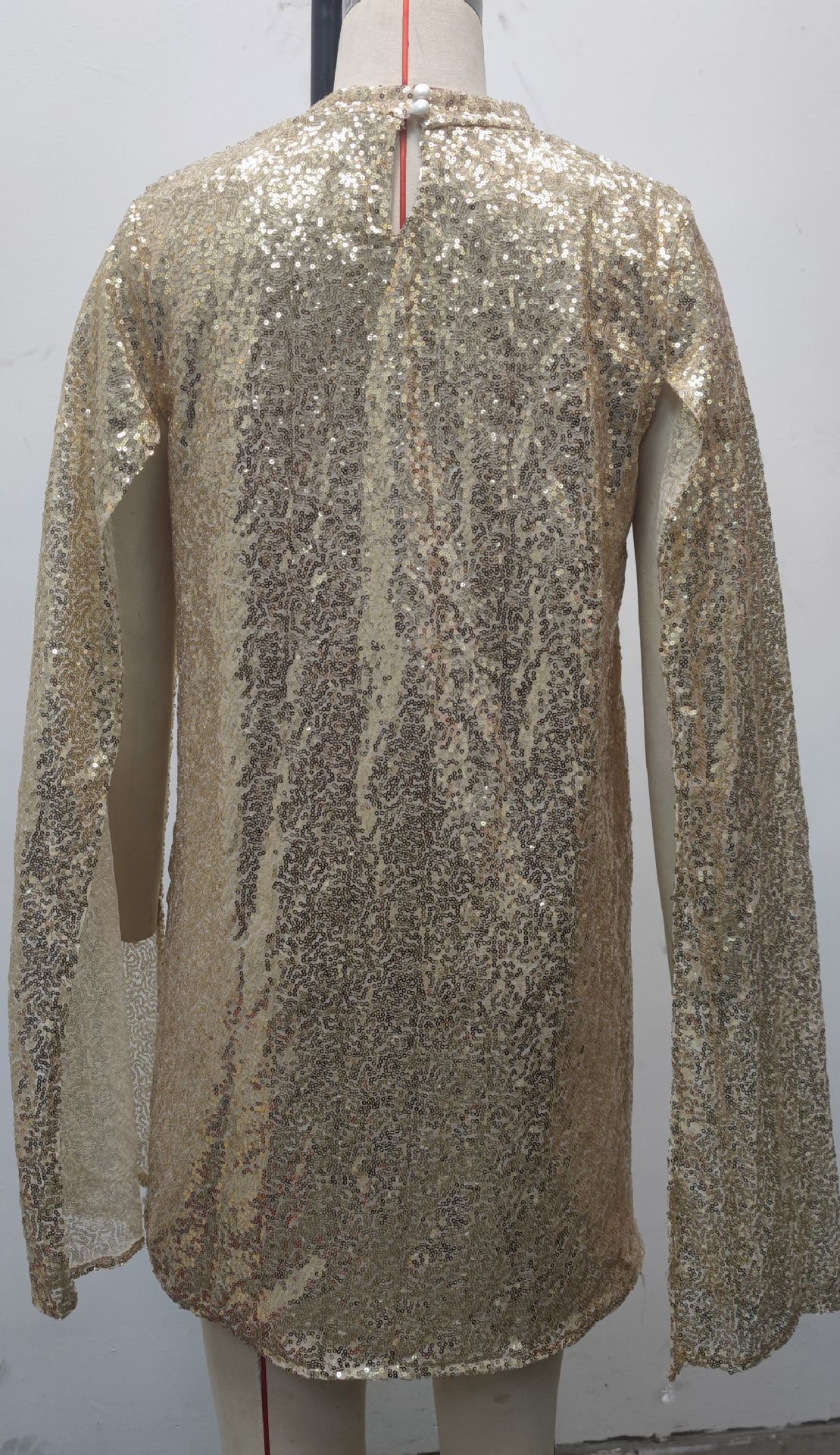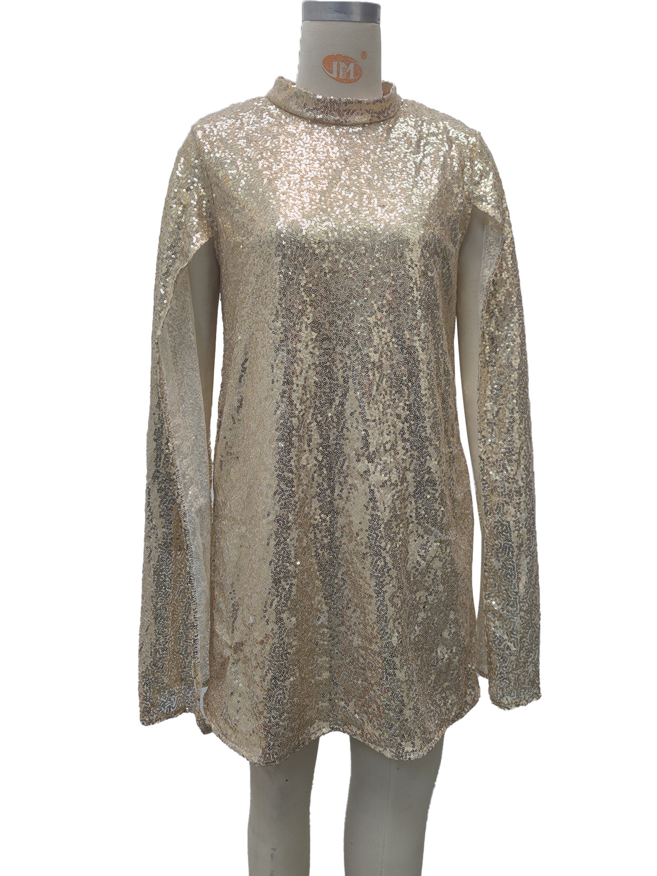 23新型速売アマゾンwish ebay欧米の対外貿易の新型の小さい襟のスパンコールのワンピースはゆったりしています。