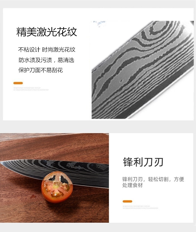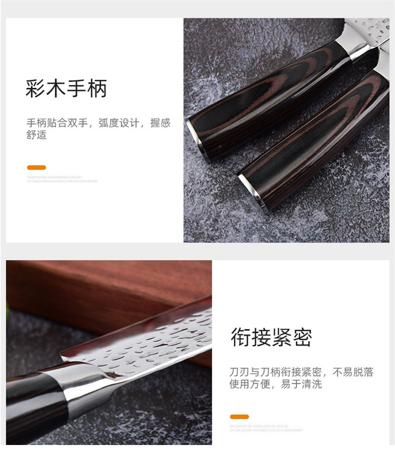 ダマスカスレザー柄シェフナイフセット彩木スチールヘッド柄日本式三徳万用ナイフパン肉切りナイフセット