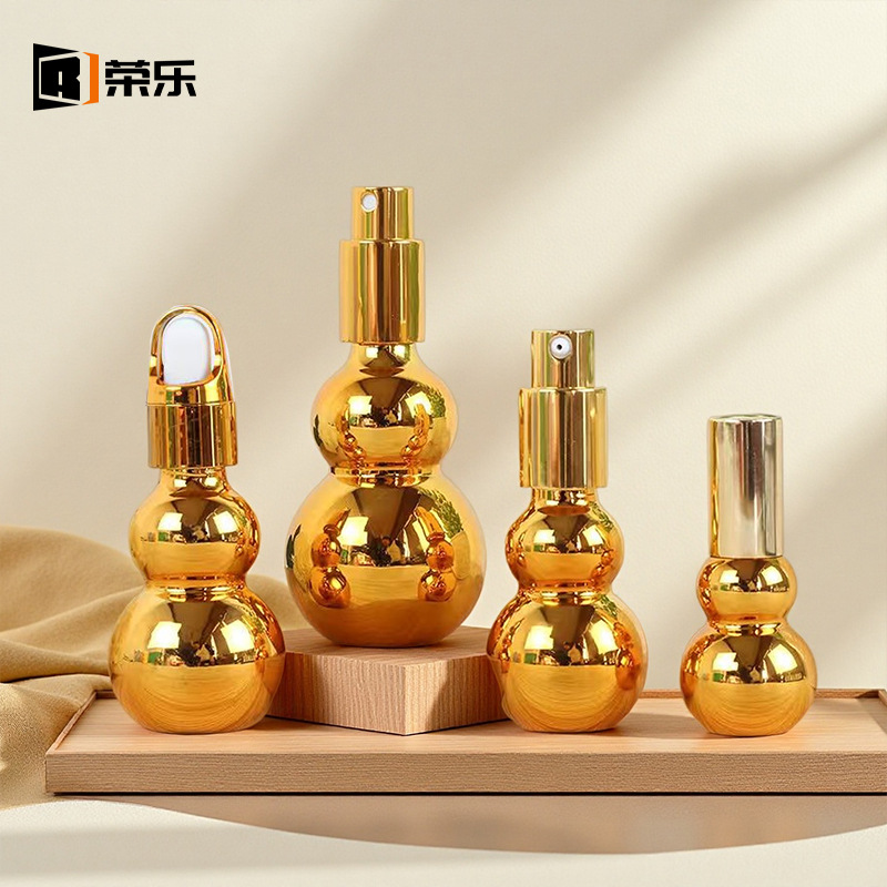 クロスボーダー電気メッキ金メッキ二重葫芦型エッセンシャルオイルボトルガラス製プレススプレーボトル美容液ローション詰め替えボトルロールオンボトル