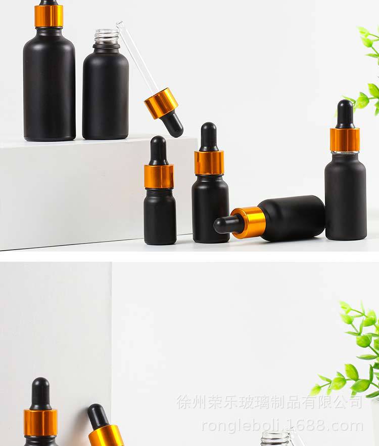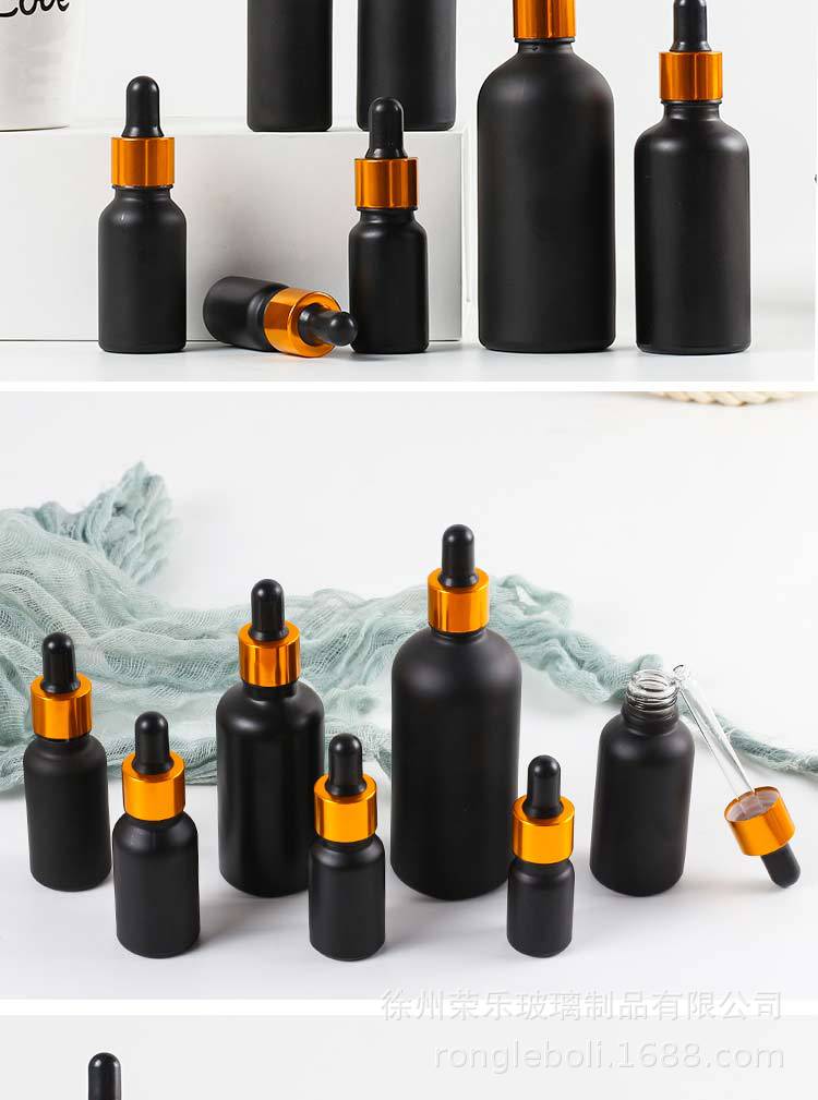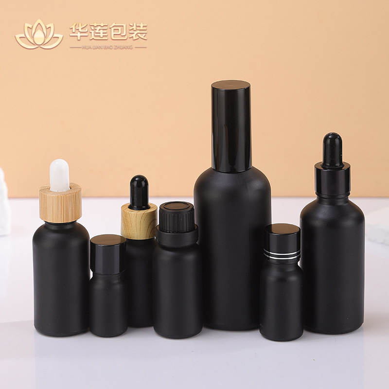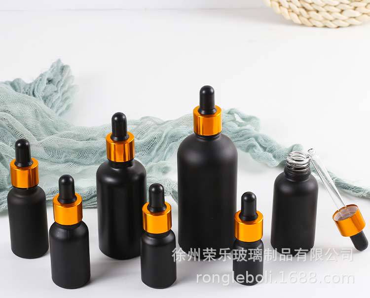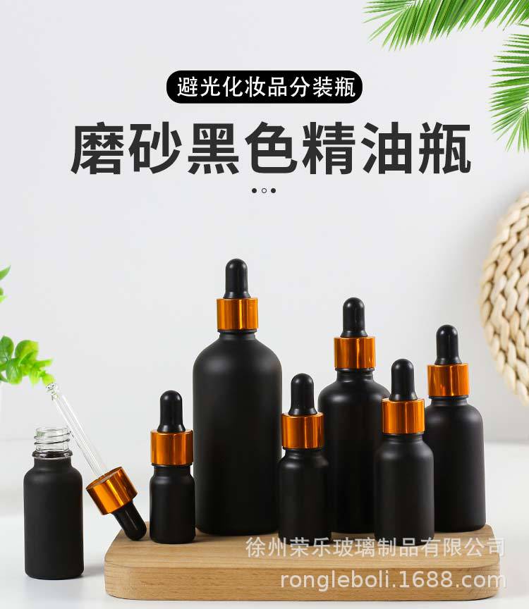 黒つや消しスポイトガラスエッセンシャルオイルボトル 5ml10ml エッセンスボトル 100ml 化粧品サンプル詰め替え空ボトル