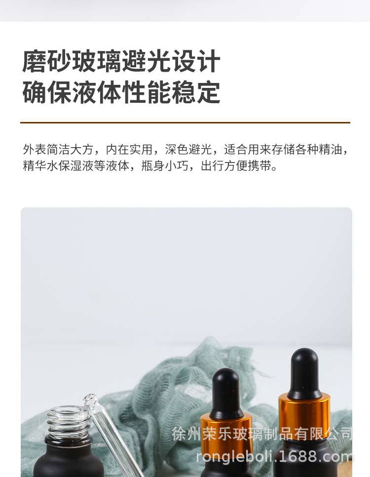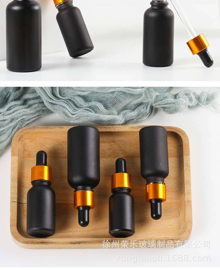 30ml避光磨砂精油瓶胶头滴管护肤品分装旅行小样瓶哑黑玻璃空瓶子