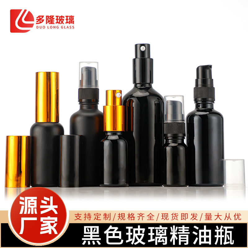 現物ガラスすりガラスマット黒精油瓶化粧品瓶盗難防止児童蓋ゴム滴管噴霧乳液ポンプヘッド