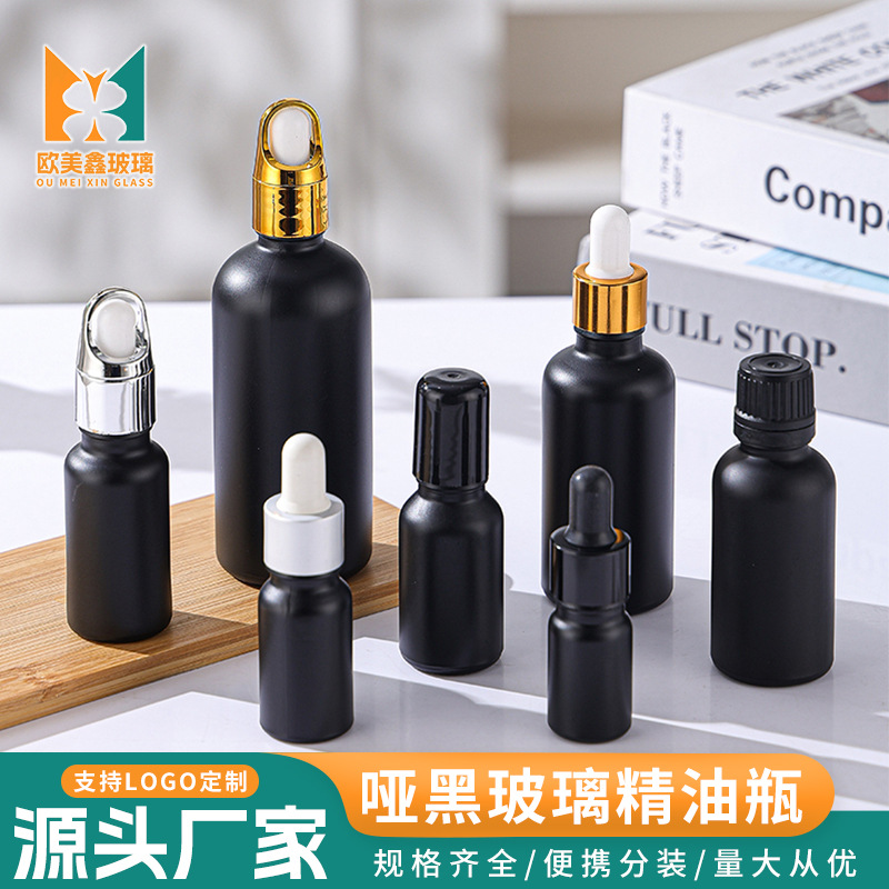 哑黑色玻璃精油瓶避光化妆品分装小样瓶胶头滴管瓶精华原液调配瓶