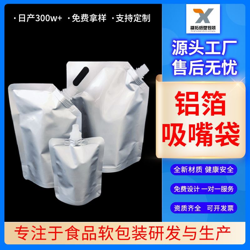 スポットアルミホイルノズル袋、食品グレードの大口径液体テイクアウトスープ包装袋、遮光水素水専用袋