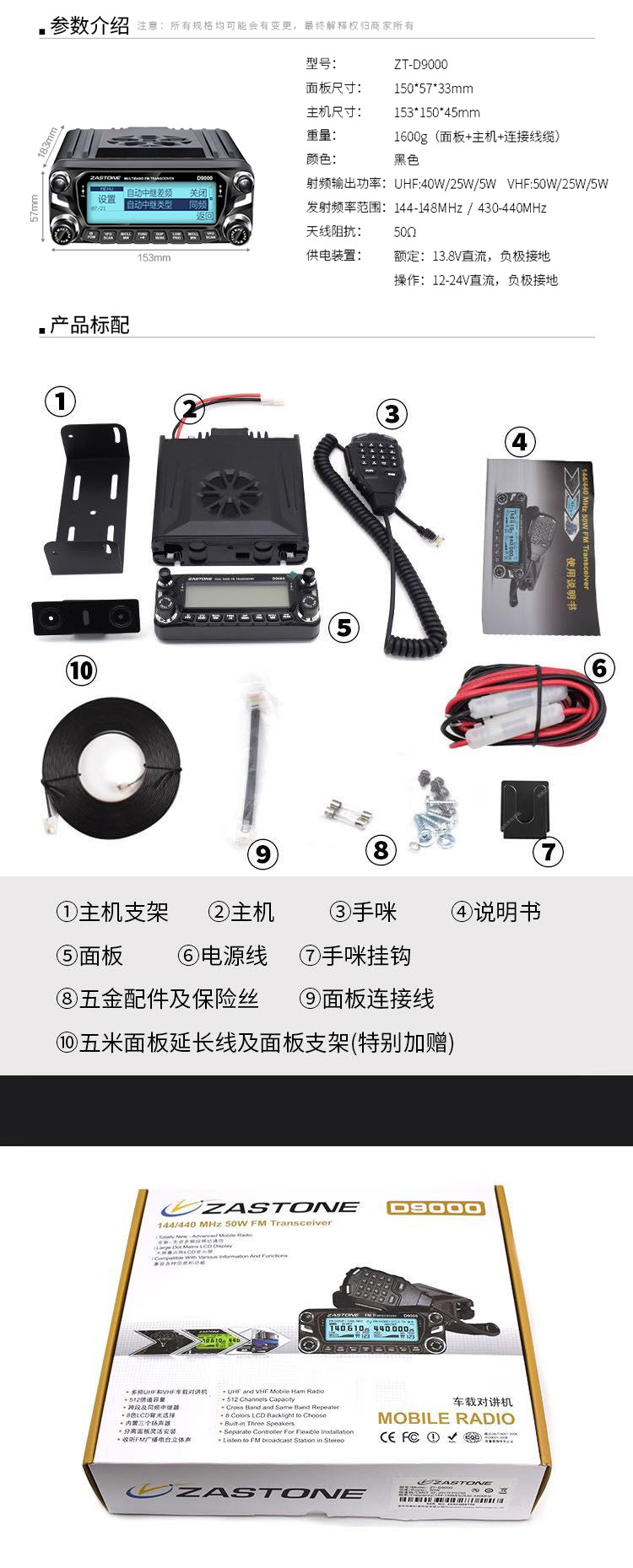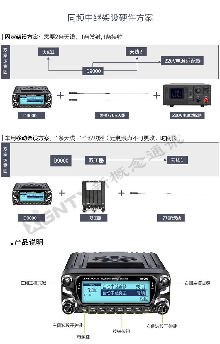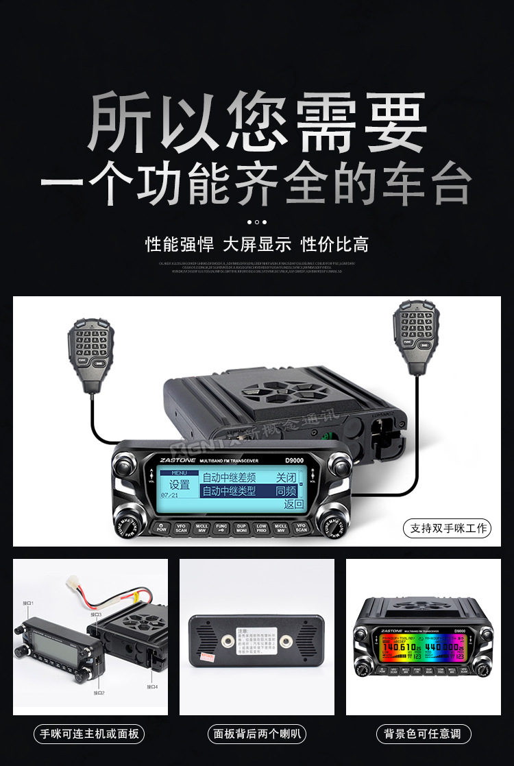 D9000车载对讲机 即时通50公里大功率无线电台户外自驾游车台中文