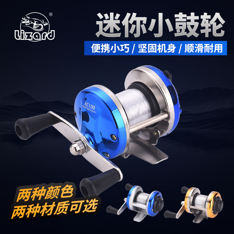 科美龙ミニアイスフィッシングリール、冬釣り用小型ドラムリール、ダブルロッドアーム、金属製本体、ラインリール付き、筏釣りリール、釣りリール